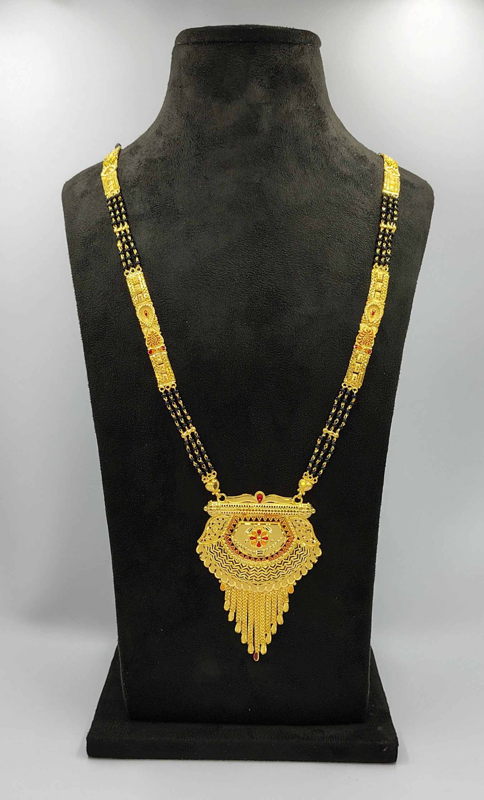 Made with high-quality 1gm forming gold jewellery, this mangalsutra offers a luxurious appearance while remaining lightweight and comfortable for extended wear. The finely detailed pendant and classic design make it ideal for weddings, festivals, religious ceremonies, and special family functions.