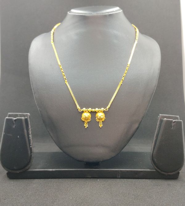 The simple and neatly designed chain allows the pendants to stand out, creating a balanced blend of tradition and modern style. Crafted using premium quality forming gold, this Mangalsutra offers the rich look of real gold while remaining lightweight, durable, and comfortable for regular wear.